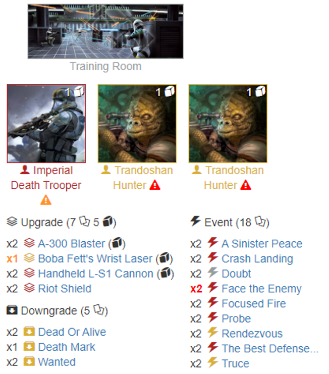 Today’s article is a joint one. We’ve both been thinking about building eTrandoshan-eTrandoshan-Imperial Death Trooper, so decided to present both our decklists, as they ended up being a bit different. Text in italics was added after we shared decklists.