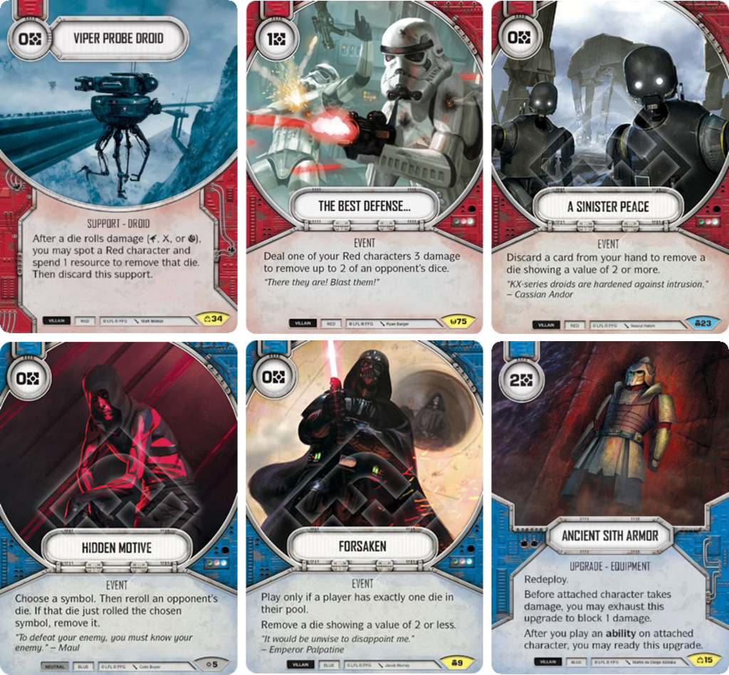 The Best Defense… is probably your best mitigation piece. As you’re not doing much re-rolling but are often cash strapped, A Sinister Peace plays out quite well. Forsaken is easy to turn on with a non-elite sidekick and abilities like Shien and Death Field. Viper Probe Droid should be on for most if not all the game, and is great against decks with ambush or against a god roll.