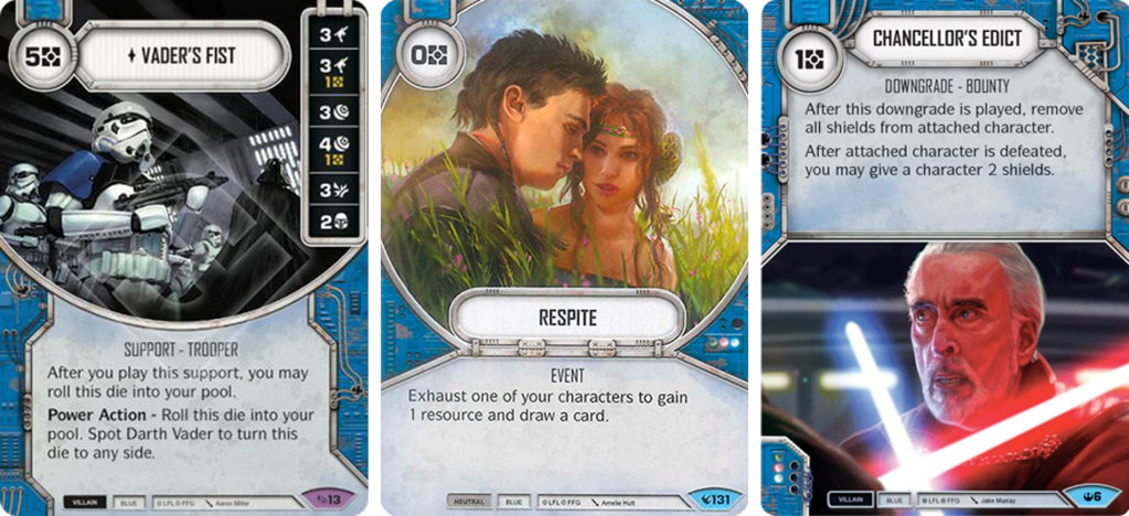 Vader’s Fist – of course it’s still the card in the game, but there’s not a lot of people that will expect to see Fist in a Trando deck [echo7: I certainly wouldn’t]. But I learnt that these guys, paired with bounties and their battlefield, can produce enough resources to play Fist.