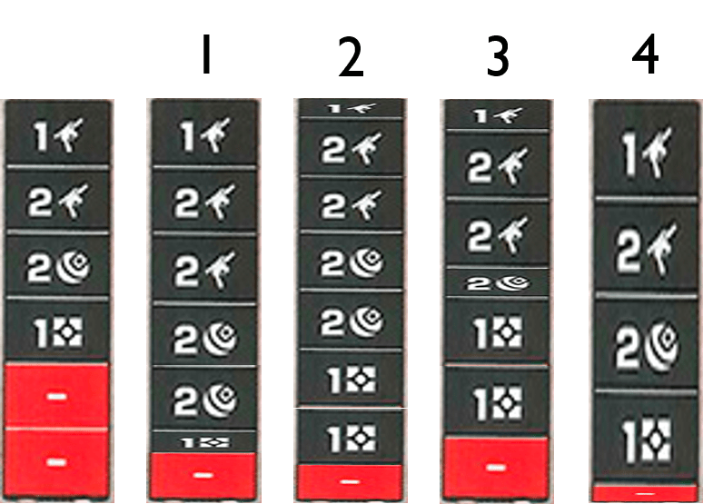 - Max damage: re-roll blanks, 1 ranged, and resources on the roll-out, and re-roll non-damage sides on the second re-roll;