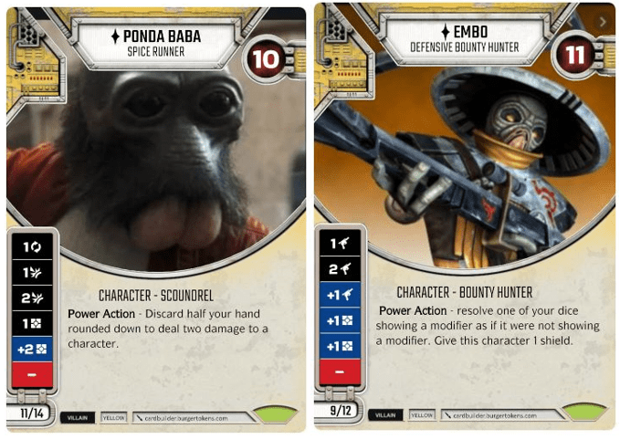 Starting easy; Ponda Baba and Embo utilize Yellow character dice.