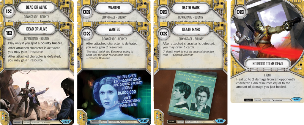 Palpatine isn’t a good matchup for any Bounty deck. Unfortunately, the strategy of “target the lowest health character” works far worse in this matchup. Right now, Palpatine isn’t too much of a threat. If we see him return, however, I suggest adding in a copy of Mind Extraction (it costs only 1 with our battlefield) or leaning heavily on No Good To Me Dead (If you can’t pop bounties, it gets you the money you need to start your snowball).