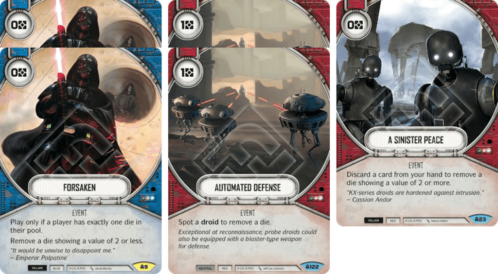 This is our single “pay one to remove a die” card in the deck. It’s simply the least limiting in its class for the deck because you’ll almost always have a droid in play (I don’t think I’ve ever been unable to spot a droid, and I’ve played hundreds of games with this deck).