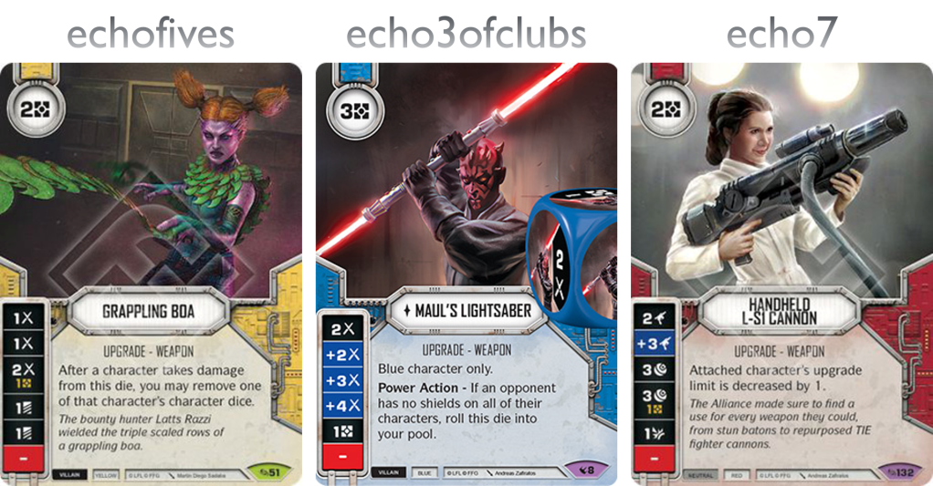 echo3ofclubs: Maul’s Lightsaber is the OG power house lightsaber. The first upgrade die to boast a 4 side, and one of the first upgrades to be power actioned back into the pool, this had to be my pick.