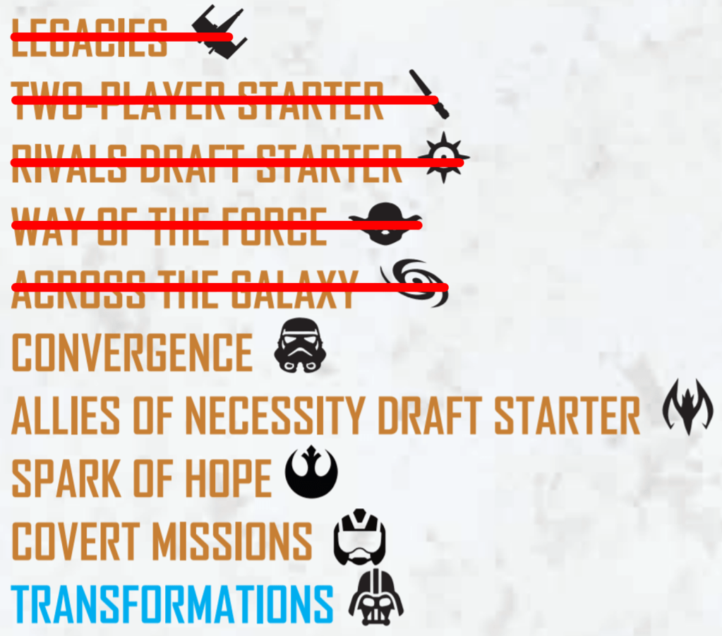 Regardless whether you’ll be playing Faltering Allegiances, or if you’re holding out for Wild Horizons, rotation is coming. We thought we’d have a quick look at the impact of the upcoming rotation on the game. As a reminder, this is what current Standard Format looks like, with the sets due to be dropped scored out: