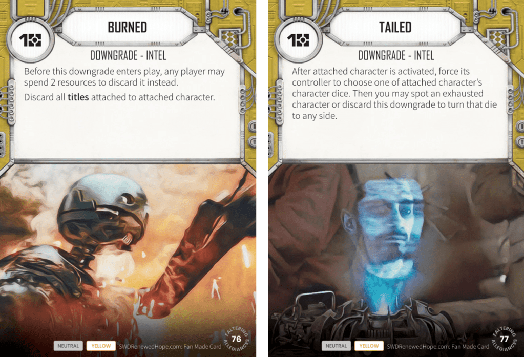 We’ve seen Forewarned (4/5), but Selling Intel is new, and it’s another yellow intel card, perfect for Cassian. It’s a clever way of monetizing the Detect keyword, and is amazing if the card costs 3 or more: 4/5