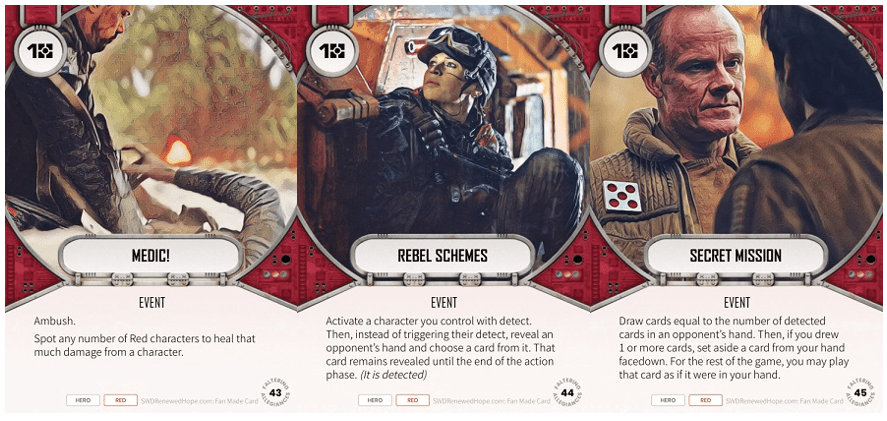 Rebel Schemes – This card is on A Renewed Hope‘s watch list. This card teamed with the Intelligence Operation plot alongside Jyn could cause a few NPE’s. Setting yourself up and choosing the detected card from your opponent’s hand in which you’d be able to play with the plot could be blowout. Again, this card is for spy decks – for me its an auto-include when playing spies: 4/5