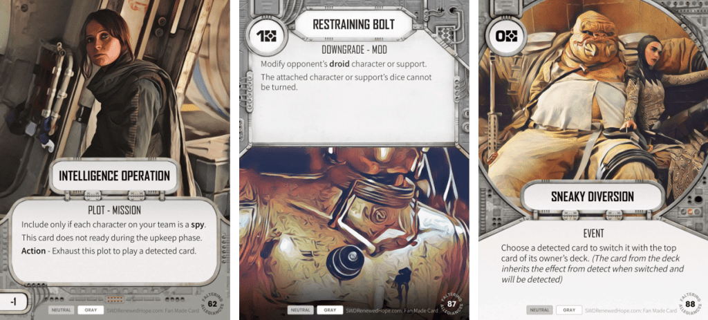 Sneaky Diversion lets you switch a detected card with the top card of a deck. I’m seeing a villain combo here of Misinformation to place two cards from an opponent’s discard pile on top of their deck, then playing Sneaky Diversion to then tap your Intelligence Operation to then play the card you picked from the discard pile which is now your opponents detected card (if they have not played it or discarded it). That’s a far fetched combo.