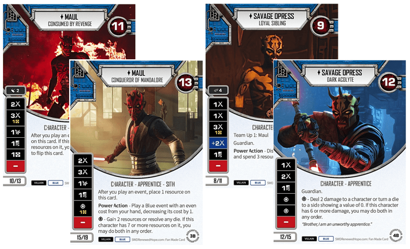 3-4. We discussed Maul and Savage at length in our article The Zabrak Nightbrothers when they were first spoiled at the beginning of January. Now that we have the full picture of the set, these guys stand alone as the set’s ‘Flip’ characters; the first we’ve seen outside of Transformations. To summarize the article: both versions of Maul & Savage are playable. The lack of a resource on Savage hurts him, as your just not going to be able to ramp hard enough in a pirate meta. Both A sides are most likely where your starting with these guys and working towards that flip – I can’t see myself starting a lineup with the B side of either character [echo7: though I do like the sound of a Zannah/MaulB/WYCWGI lineup].