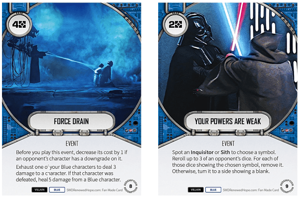 9. Your Powers Are Weak – This card is basically Hidden Motive on steroids. Call a symbol, re roll up to 3 dice, if they hit that symbol get rid of them; if they don’t then turn the dice to a blank. This is really strong and powerful mitigation. This could a staple in Blue Villain decks if you can meet the spot requirements. (4/5)