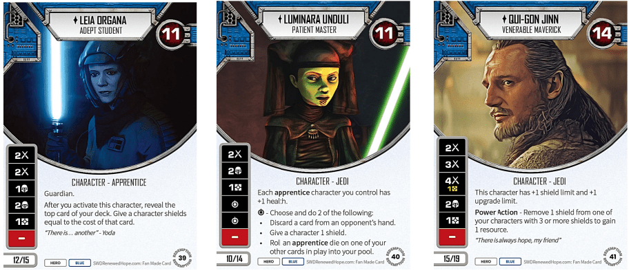 40. Luminara Unduli – Patient Master – To get the most from Lumi you’ll be wanting to pair her with an apprentice to gain value from her special. The best apprentice right now is undoubtedly Leia Organa. As an alternative you could play Anakin or Mace and mulligan hard for that Padawan Braid to give them the Apprentice subtype. Don’t underestimate her ability to gain shields or discard random cards from your opponent’s hand – limiting rerolls and stripping key cards is not to be undervalued. If she loses her partner though, she will struggle to close out the game.(3.5/5)