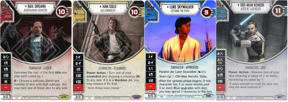 Han Solo – Old Swinder is a fantastic support character. Unfortunately he’s been over shadowed by his younger self in the form of his more Cool and Confident variant over the past year.Han will bring the money or hit for a few ranged sides and generally assist in getting the job done. His Scoundrel subtype will allow for Mean Streets to assist with end of round mitigation. Unfortunately I doubt this line-up will be anywhere near meta.
