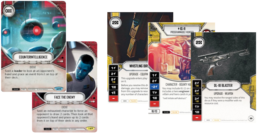 One final thing: I know there’s a lot of powerful stuff in infinite, but IG-11 has the potential to be ridiculous. You can pair him elite with a Rebel Engineer (or Rose), allowing you to dig for droid mods, and leaving 9 points for any hero blue character. This means you can play with any card, from any set, regardless of faction and affiliation. Maybe I’m wrong, but I’d just pre-emptively ban him in the format.