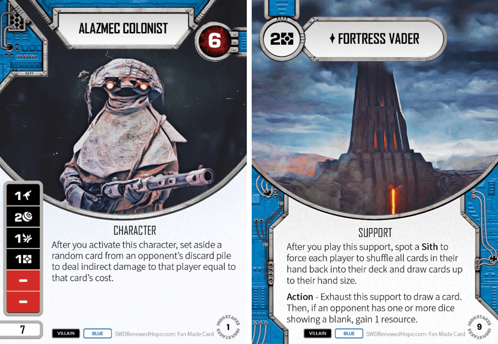 The Mandalorian Covert has some anti-Renew tech built in, and could be used with the Alazmec Colonist to try to remove the cheap cards from the opponent’s discard pile. I also like that it’s a battlefield which is pretty low powered, so a good option for slow support decks that aren’t doing much claiming.