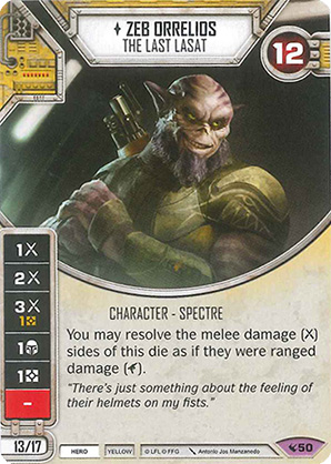 EchoFives – Personally, I’m super happy with some of my favourites coming back. My Discord and Tabletop Simulator namesake Lando. There are some great new yellow vehicles to play for cheap with his Power Action, Outrider for 3 resources. Yes, please. Second is Iden Versio, Such a solid character with a very neat passive ability to slow down those decks that try and get the jump on you with ambush. I expect to see her and Commander Pyre Relentlessly Advancing everywhere. Finally, and I can’t explain why, I love the character Zeb and am so glad he can fit back into the Spectre deck. Thanks Destiny Community for voting these in.
