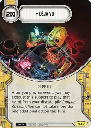 For me, the biggest concern is Déjà Vu. There’s a lot of strong events right now. Playing any of them twice is problematic. And the biggest issue with the card is it makes designing strong events in the future tricky.