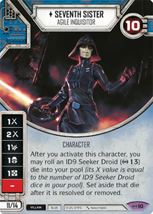 Seventh Sister comes in with her ID9 droid, and is an Inquisitor, meaning she can benefit from the many spot inquisitor cards from ARH. Also, the presence of Aphra means you can include 8 ID9s in your deck, which combined with the one she rolls in makes for a possible maximum of 9 of these in your pool. OK, that’s absurdly unlikely, but several of these could make for an interesting combo deck, especially with No Second Chances on the cards. Thrawn on the other hand is an old favourite and makes the perfect partner for Unlikely Heroes Tarkin. Open your round by PAing Tarkin, then follow up with a Thrawn activation to discard two cards of your choice from the opponent’s hand. The downside is you’ve got just 23 health and open with very few damage sides. You could run them both non-elite, but 6 points doesn’t leave many options.