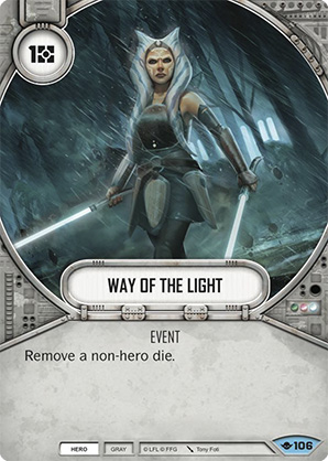 In fact, looking at the events in the 3 decklists that took down the last Galactic Open, every one of the 6 reprinted events in Jyn/Han, all 10 events in the Din Djarin deck, and all but Beguile of the 8 events in the Ki-Adi-Mundi deck, have now been axed.
