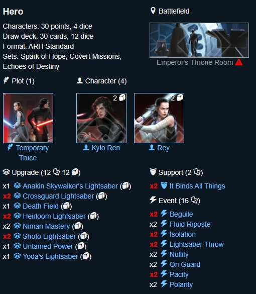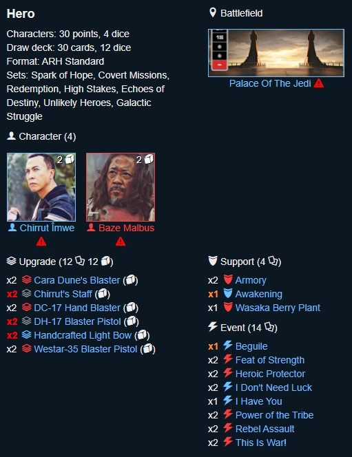 Holocron in force and Rules Reference Guide: The ARH Deckbuilding Database already has the balance changes in so if you head to there you shouldn’t have an illegal deck if you build it on there. Home page is here.