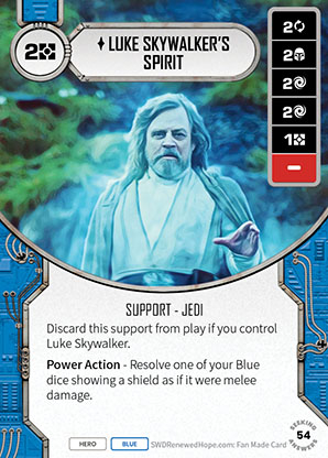 I’m not entirely sure why I like this card so much. Much like the Temple Guard, this has a very useful dice but it is the Power Action that draws me to this card. Turning shield sides into damage just like the Old Luke. It makes some other cards feel much better as you can weaponise your shields. The cards that first comes to mind are Shien Mastery and Plo Koon, both now sporting five damage sides when this is on the table. It’s especially great when you can pull off resolving a Leia Saber shield side boosted by shields to five.